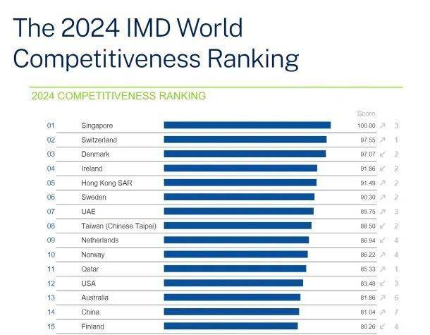 新加坡擁有高度發達的自由市場經濟,根據今年6月18日瑞士洛桑國際管理發展學院(IMD)發布的《2024年全球競爭力年報》,新加坡憑借卓越的表現,在全球最具競爭力國家的排名中榮登榜首,成為全球最具競爭力的經濟體。