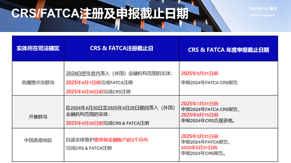 如果您仍然不確定實體是否落入CRS/FATCA范圍,或者需要我們協助注冊/申報等合規事宜,請盡快聯系為您提供專屬服務的RICHFUL瑞豐客戶經理,以尋求支持,我們將竭誠為您服務。